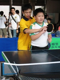 小朋友於香港乒乓總會教練指導下學習接球技巧。