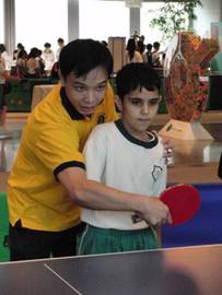 圖二 小朋友於香港乒乓總會教練指導下學習接球技巧。