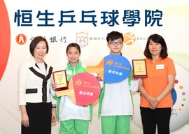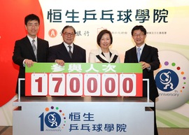 薛關燕萍女士表示:「自1991年開始,恒生共投入超過港幣3,100萬元推廣乒乓球運動。我們很高興見到這項回報極佳的投資項目,學院不但讓青少年體驗到乒乓球的樂趣、培養健康生活和建立正面人生觀,亦見證著一個又一個乒乓好手誕生。」