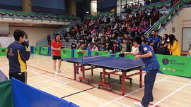 大會於下午一時安排了一節「削球示範」,由香港乒壇名宿盧傳淞與港隊後起之秀麥景皓的削球示範,吸引不少學員、家長及乒迷作壁上觀,而盧傳淞除有即場示範打「削球」外,也有指導小學員打削球的技巧,現場氣氛輕鬆,場面相當熱鬧。