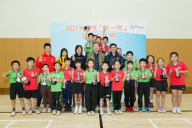 2013恒生「新一代」乒乓大比拼今日於觀塘曉光街體育館圓滿結束,鍾華譽及李凱敏在男、女子甲組單打賽事中分別稱王封后,賽後隨即進行頒獎儀式,並邀得恒生銀行企業責任經理鄺凱瑩、香港乒乓總會義務司庫郭嘯南、前港隊代表盧傳淞及現役港隊成員麥景皓主禮。