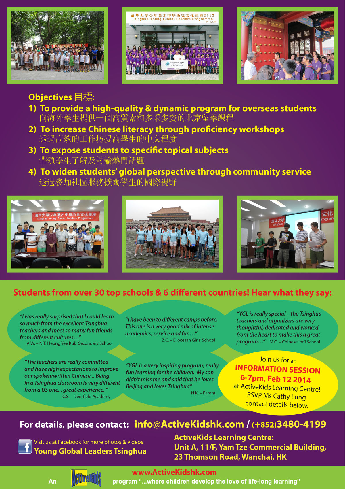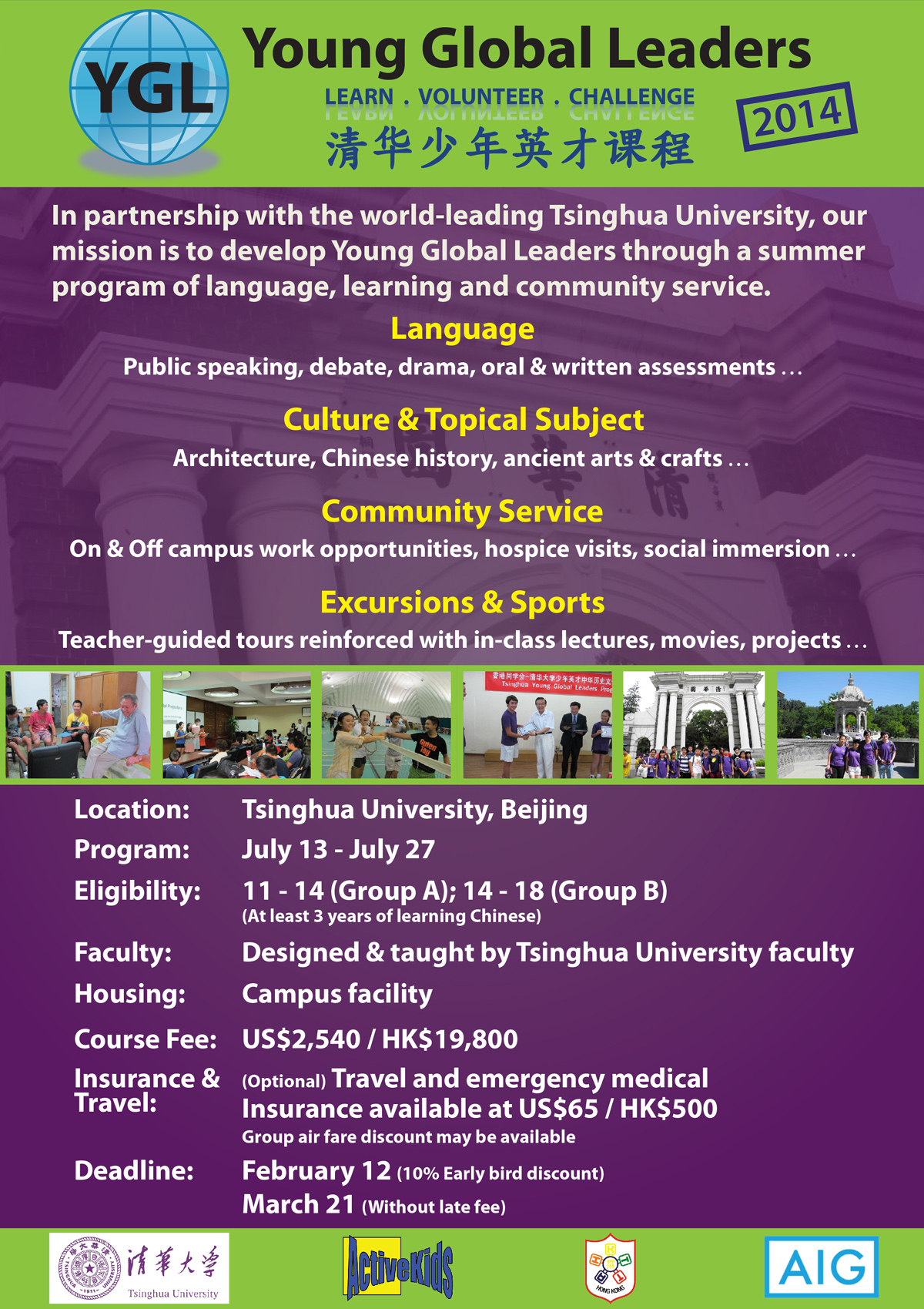 查詢電話: 3480 4199 (啟趣教育Activekids) Facebook專頁: www.facebook.com/YGLTsinghua 截止報名日期: 2014年3月31日
