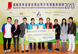 由香港體育學院主辦的運動燃希望基金傑出青少年運動員選舉二零一三年周年慶祝活動及第四季頒獎典禮於2月24日假香港體育學院(體院)舉行,共有11位青少年運動員獲頒季度獎項,以嘉許他們於去年十月至十二月的傑出表現。港女子青少年乒乓球運動員杜凱琹、林依諾、蘇慧音和王重云憑著「2013世界青少年乒乓球錦標賽 – 青年團體季軍」而獲獎,得獎者每人分別獲頒贈現金獎2,500港元、價值2,500港元的禮券及獎狀。各得獎球員家長亦抽空蒞臨頒獎典禮,一同分享喜悅。本會在此向各得獎球員祝賀,希望各人比賽成績更上一層樓。此外,本會亦喜獲體院頒發「全年最積極參與體育總會獎」。