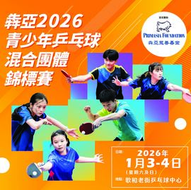 犇亞2026青少年乒乓球混合團體錦標賽決賽日將於2026年1月4日(星期日) 假歌和老街乒乓球中心舉行。