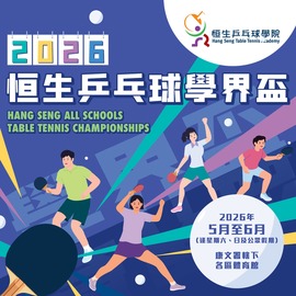 2026 恒生乒乓球學界盃將於2月12日(四)起接受報名,截止日期為2月26日(四)。